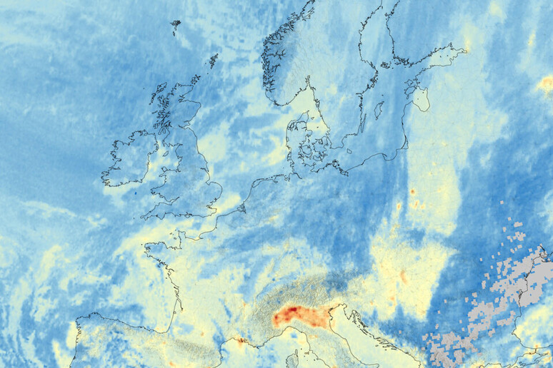 La prima immagine (ripresa, come le altre, lo scorso 8 ottobre) mostra il diossido di azoto nella troposfera, con evidenti hotspot di inquinamento visibili lungo le coste del Mediterraneo e sulla Pianura Padana.